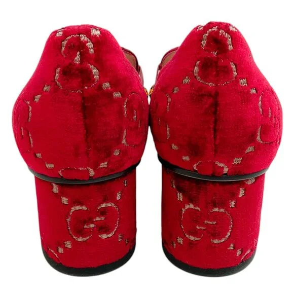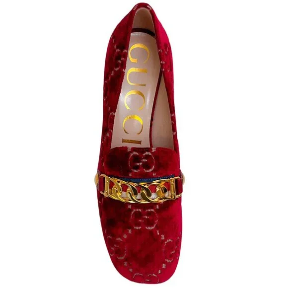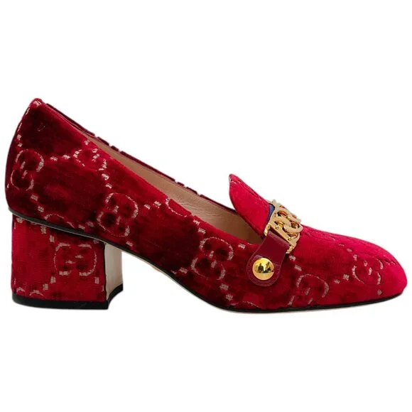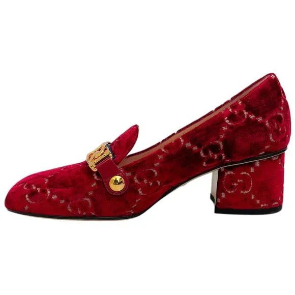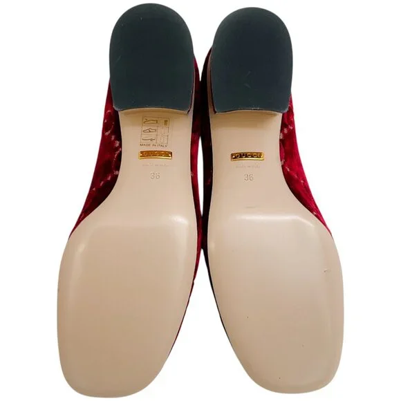 Gucci Red Velvet GG Monogram Sylvie Mid Heel PumpsCondition: Never wornMaterial: Velvet*As with all velvet items, these are delicate and may have a slight discoloration (due to the nap in the fabric) and minor indentations (due to the soft, supple material)Includes: N/ACountry of origin: Italy*Please note, as with most designer shoes, they may run smallHeel height: 2"Sole: LeatherHardware: Gold toneColor: RedSize: US 6 / EU 36Category: ShoesSubcategory: Heels15053-5119 F225MA** Photos are of the actual item **** Roundabout Couture Certified Authentic **