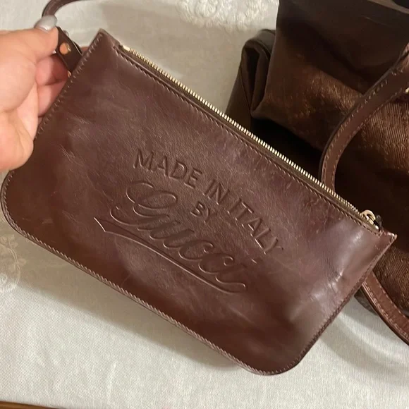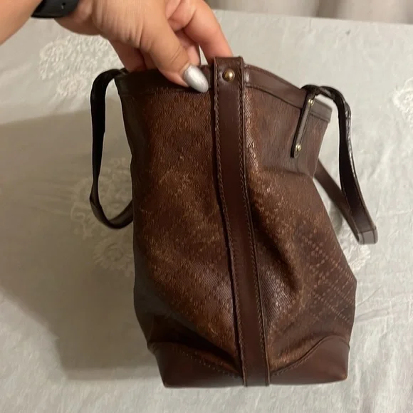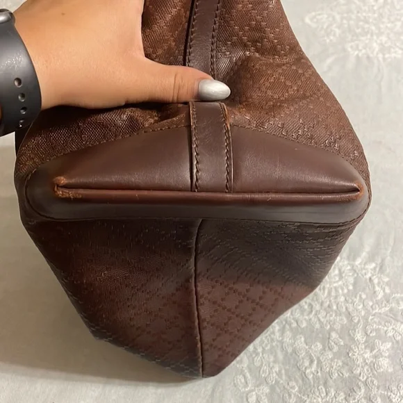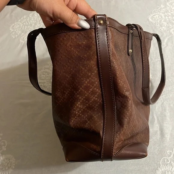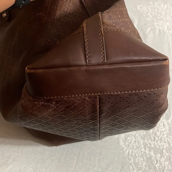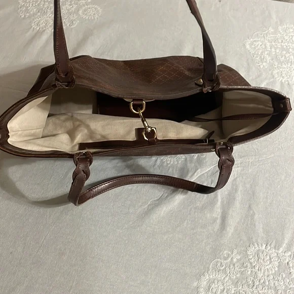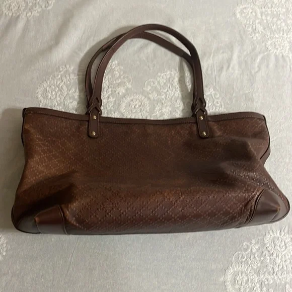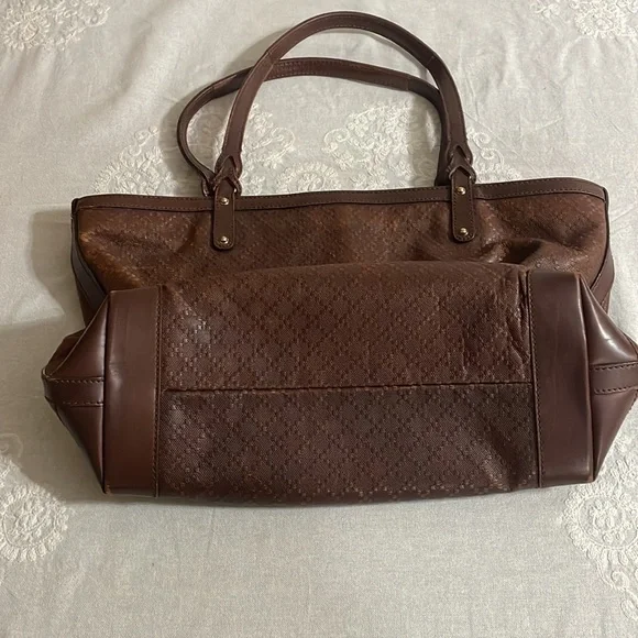 GUCCI Vintage Tote Bag247209 Diamante Shoulder Bag Brown Leather Excellent vintage condition, see photos for normal wear. Wear on bottom edges from normal use. Some minor wear to outside as well.Gold hardwareBrown leather zippered removable insertTwo pockets and one zippered pocketLength: 18"Height: 11"Width: 6"Drop: 9 1/2"(TT)